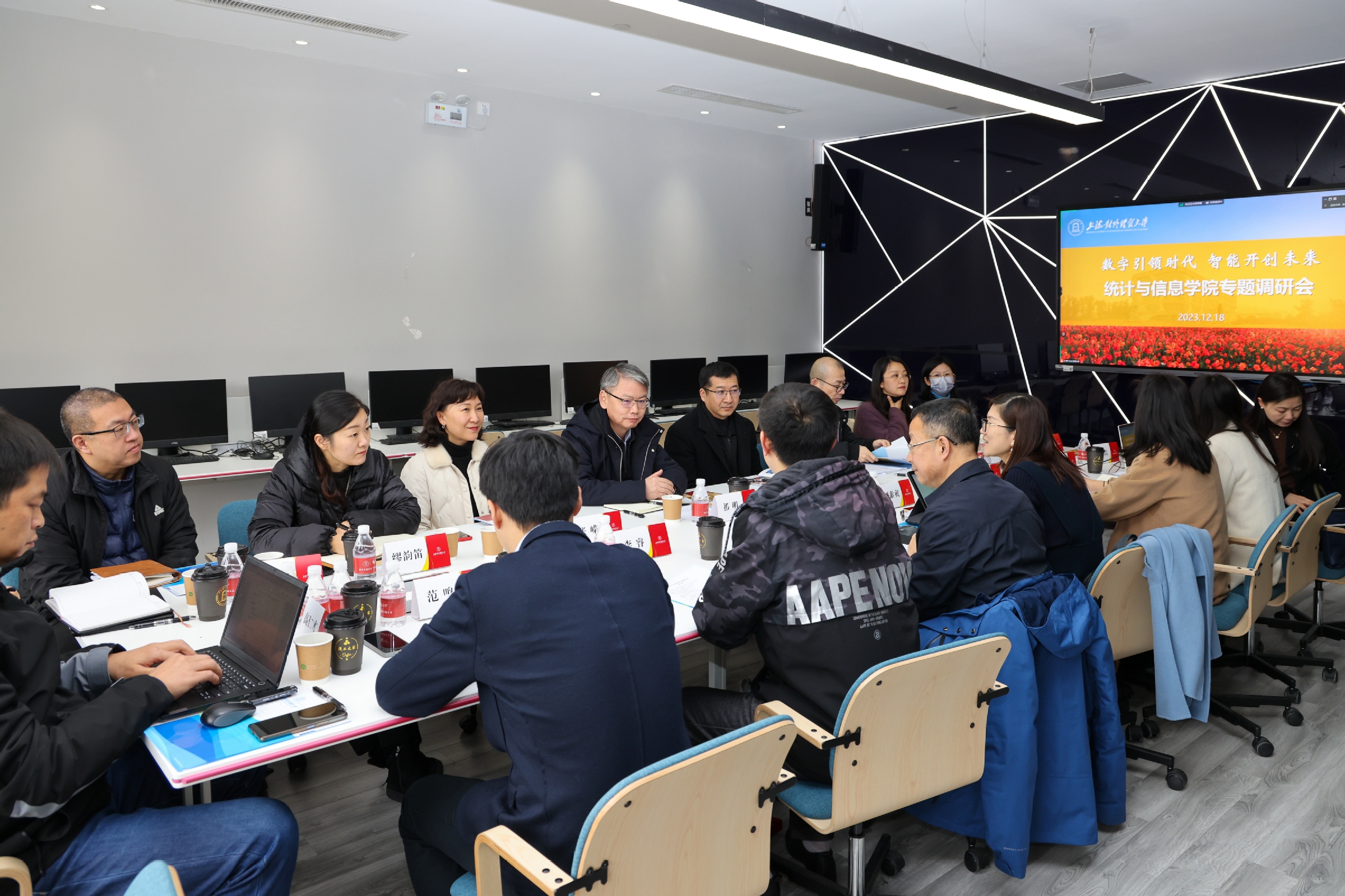 12月18日上午,校黨委書記祁明一行赴統(tǒng)計與信息學(xué)院召開專題調(diào)研會,就黨建工作標(biāo)桿院系建設(shè)和“數(shù)智+”交叉復(fù)合型人才培養(yǎng)進行交流座談。統(tǒng)計與信息學(xué)院全體領(lǐng)導(dǎo)班子、教師代表,校黨委組織部、學(xué)校辦公室、黨委教師工作部(人事處)、教務(wù)處、研究生院、黨委學(xué)(研)工部、招生就業(yè)處等相關(guān)職能部門負責(zé)人參加本次調(diào)研。