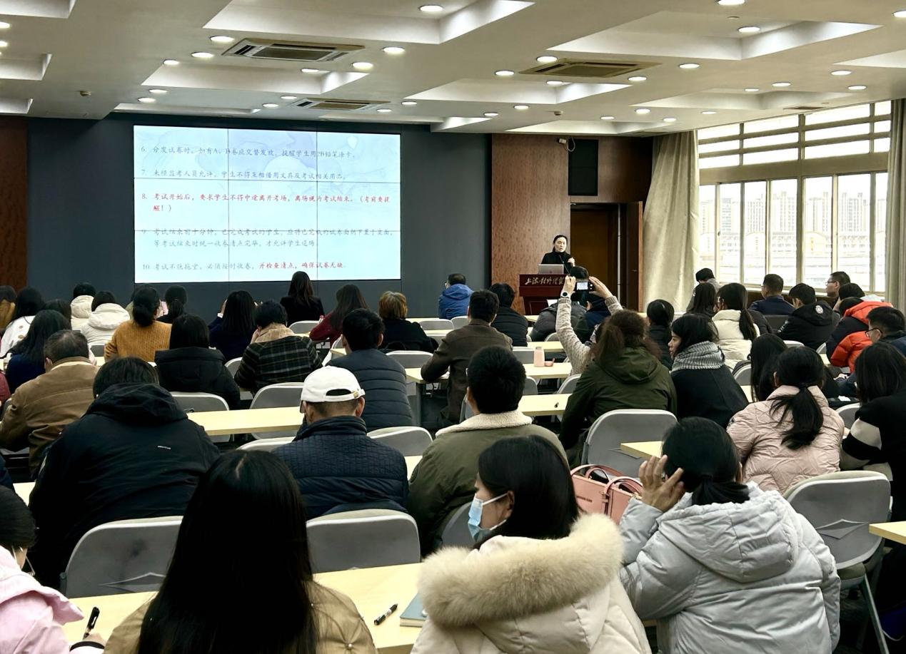 王利娟副院長做期末考試考前動員。王利娟對期末考試監考工作以及期末成績的錄入、提交和歸檔中的要點進行了說明。