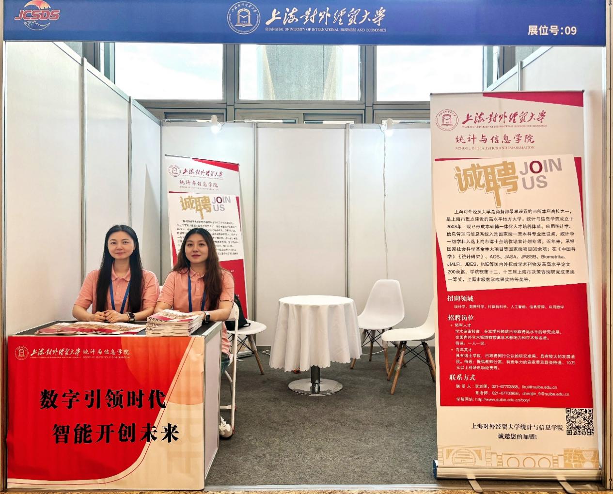 學院辦公室主任陳潔和人事秘書邢曉雪老師在聯合會議現場開展人才招聘工作,向與會高校師生介紹學院教師招聘計劃。