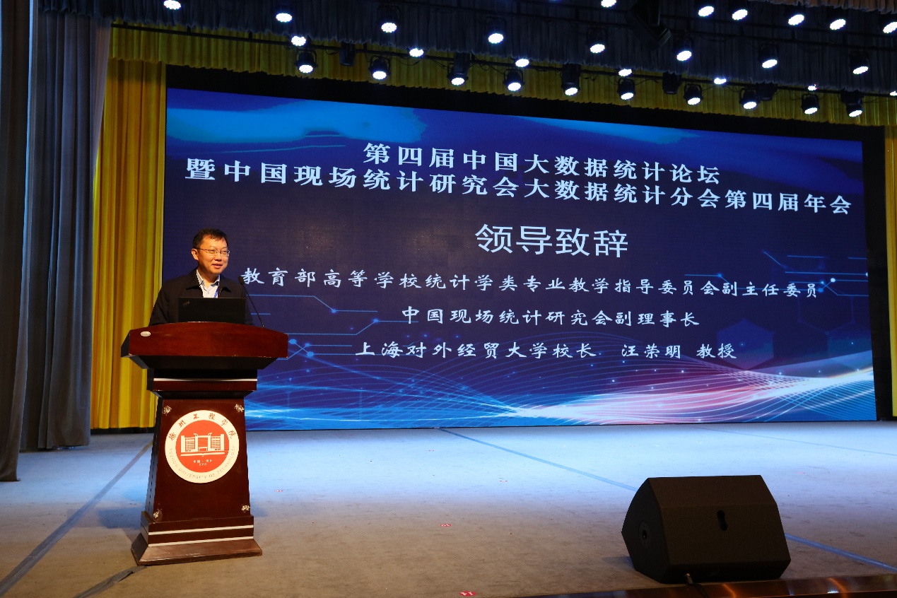 開幕式上,中國現場統計研究會副理事長、教育部高等學校統計學類專業教學指導委員會副主任委員、國務院學位委員會第七屆、第八屆學科評議組成員、上海對外經貿大學校長汪榮明代表中國現場統計研究會為大會致辭。汪榮明對學會的工作和影響力表示了充分肯定,并感謝各位專家學者、行業嘉賓們的支持。他希望各位專家學者借助中國現場統計研究會大數據統計分會年會這一平臺進行深入交流,分