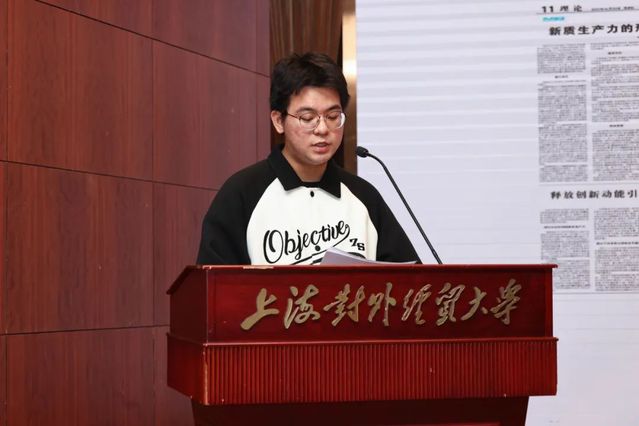 會上進行了調研隊伍成果展示。統計與信息學院碩士研究生封冰悅以《科技創新型企業新質生產力發展:戰略引領機制探尋與潛在趨勢預測分析》為主題,介紹團隊調研實施過程與分析方法,得出影響機制等結論并提出建議。統計與信息學院本科生徐楚杰以《新質生產力驅動下的新能源汽車產業鏈重構與增量創新路徑研究》為主題,深入剖析新能源汽車行業發展,分析其受多種因素影響及變革重構情況,通過調研模型提出創新路徑。國際組織學院(貿易談判學院)本科生陽岸容以《新質生產力驅動顛覆性技術在上海高新企業的發展調查研究》為主題,交流團隊調研方案實施、分析結果及心得感悟,為企業發展提供可參考的建議。