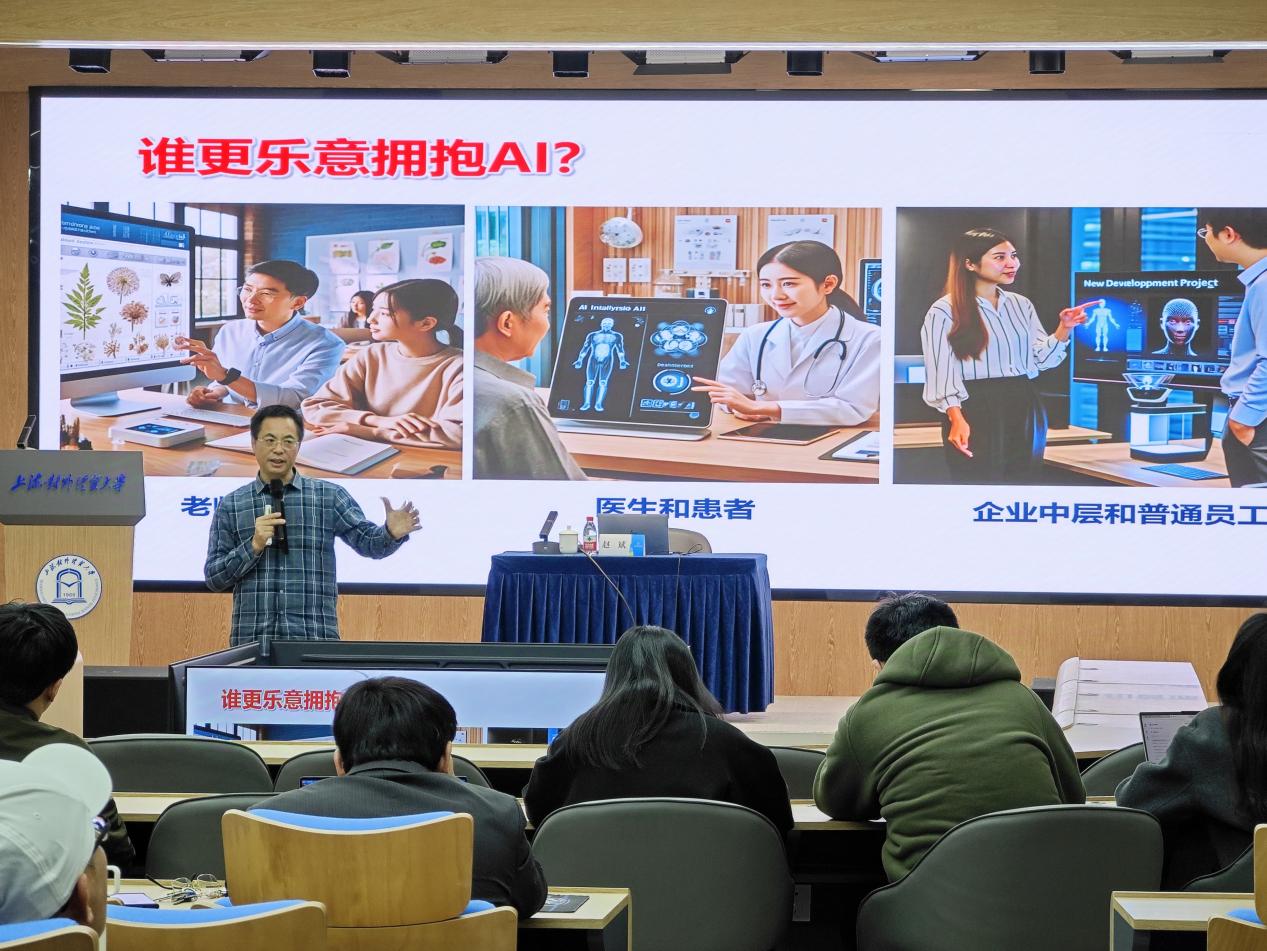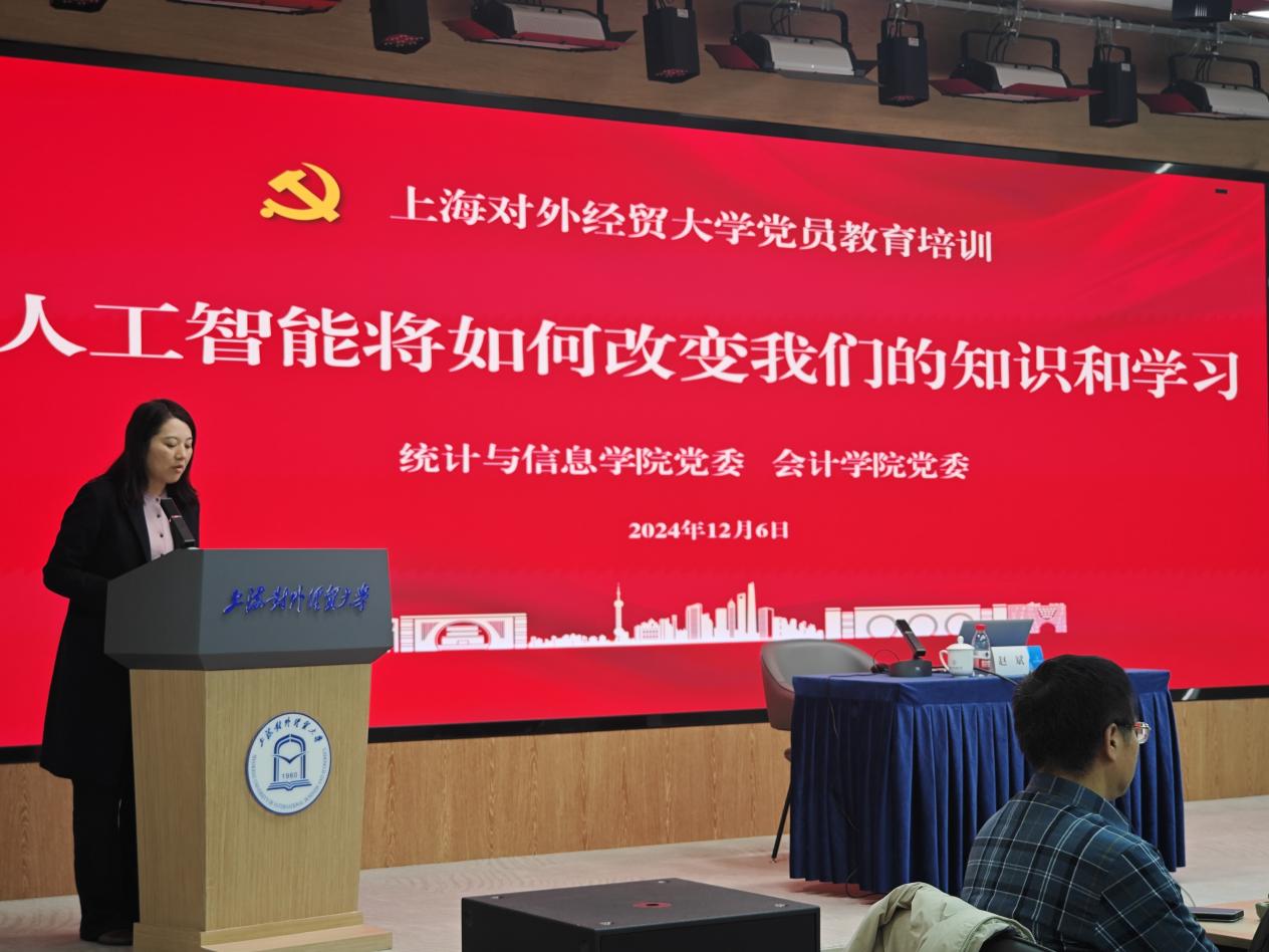 為深入學(xué)習(xí)習(xí)近平總書記致2024世界智能產(chǎn)業(yè)博覽會(huì)賀信精神,緊抓人工智能技術(shù)為重塑高等教育形態(tài)提供的嶄新機(jī)遇,幫助教師適應(yīng)數(shù)字時(shí)代發(fā)展需要,提升黨員教育培訓(xùn)工作實(shí)效,12月6日下午,統(tǒng)計(jì)與信息學(xué)院黨委、會(huì)計(jì)學(xué)院黨委在松江信息樓213報(bào)告廳,聯(lián)合開展師生黨員教育培訓(xùn),邀請(qǐng)復(fù)旦大學(xué)生命科學(xué)學(xué)院教授、博士生導(dǎo)師趙斌做《人工智能將如何改變我們的知識(shí)和學(xué)習(xí)》主題報(bào)告。統(tǒng)計(jì)與信息學(xué)院黨委書記黃靜主持報(bào)告會(huì)。