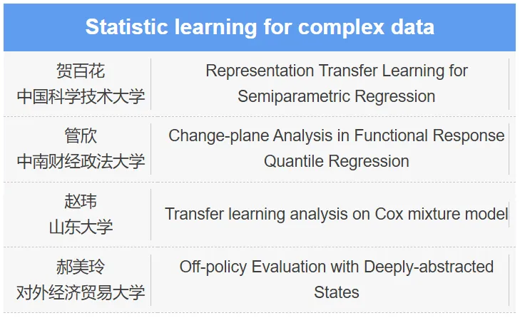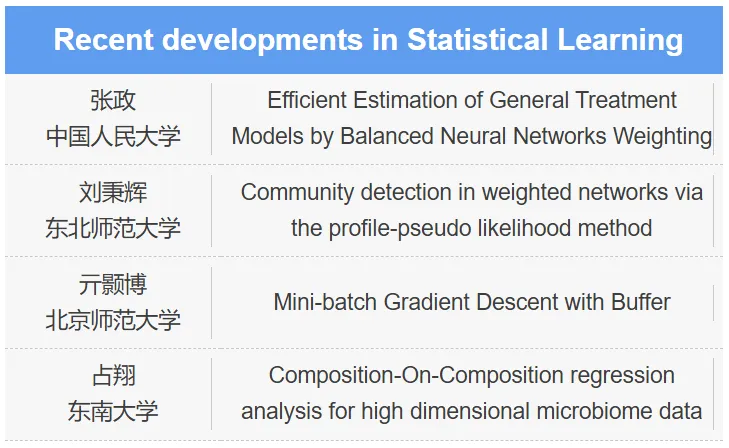 報告人簡介:孔新兵,南京審計大學教授、博士生導師,入選國家高層次青年人才計劃,國際統計協會(ISI)當選會員、國際數理統計學會會員,主要研究興趣為高頻與髙維數據統計推斷與機器學習,在統計學與計量經濟學頂級期刊Annals of Statistics、Journal of the American Statistical Association、Biometrika、Journal of Econometrics、Journal of Business and Economic Statistics發表論文二十余篇,主持國家自然科學基金項目4項。獲第一屆統計科學技術進步獎一等獎,教育部優秀科研成果(人文社科)三等獎,江蘇省教育系統先進個人(優秀教師)。