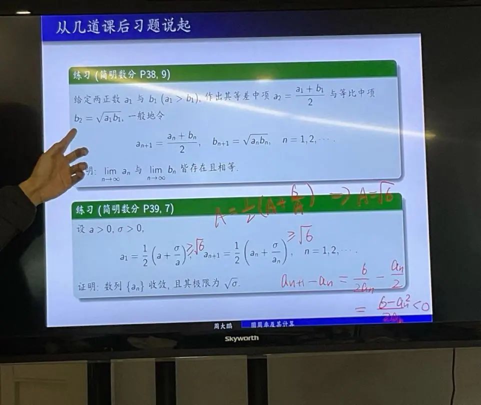 周大鵬老師從《簡明數學分析》的課后習題入手,為同學們帶來講座《圓周率及其計算》。他首先介紹了歷代數學家為計算圓周率所做的努力及其成果,從阿基米德、劉徽、祖沖之,到韋達、歐拉、萊布尼茨,再到牛頓,由淺入深地講述了求圓周率方法的不斷進步。之后周老師分析了各個方法的時間復雜度,得到一個較優的算法。最后周大鵬老師鼓勵大家繼續探索數學分析,享受學習的過程。