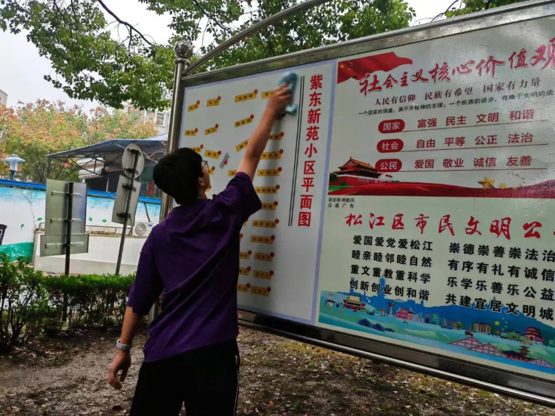 為響應全面深化改革的號召,結合《大學生社區實踐計劃工作指引》,本團支部發揚“我為群眾辦實事”精神,來到了上海市松江區紫東新苑社區。在雨天過后為小區公告欄擦拭雨水并拾取地上垃圾,這是一項旨在深化大學生社會實踐服務社區居民促進社區發展的重要活動。