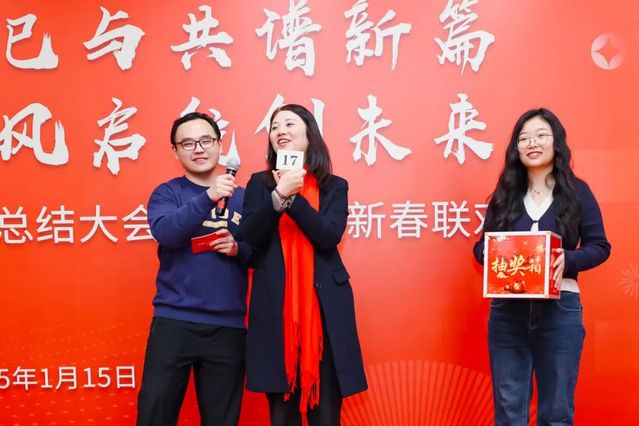 在聯歡會的尾聲,學院領導們紛紛為教職工送上新年祝福。張日權院長為蛇年本命年的教職工贈送了紀念品,祝福他們在新的一年金蛇迎福,蛇運亨通,蛇年大吉。黃靜書記表達了對老師們的感謝和祝福,對學院事業發展的美好愿景,希望全體教職工高揚理想,以奮斗、以激情、以團結、以擔當,在2025年濃墨重彩書寫嶄新篇章!
