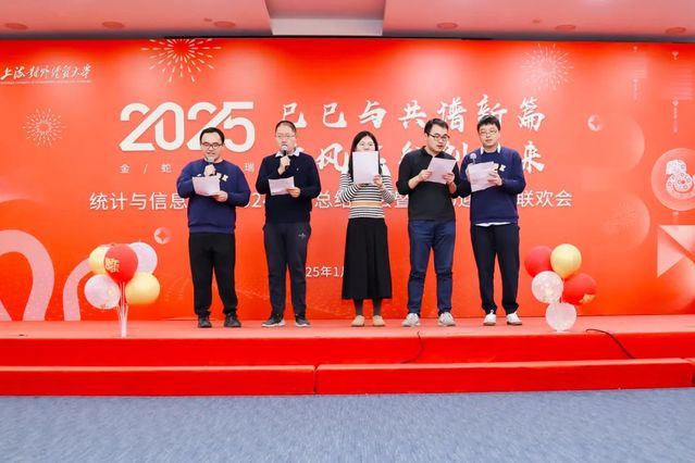 1月15日下午,統計與信息學院在信息樓 526 會議室舉行“靈蛇舞動,喜迎新春” 2024年學院總結大會暨2025年迎新春聯歡會。學院全體教職工齊聚一堂,共同回顧過去一年的奮斗歷程,展望新的一年,喜迎新春佳節。總結大會由學院黨委書記黃靜主持。