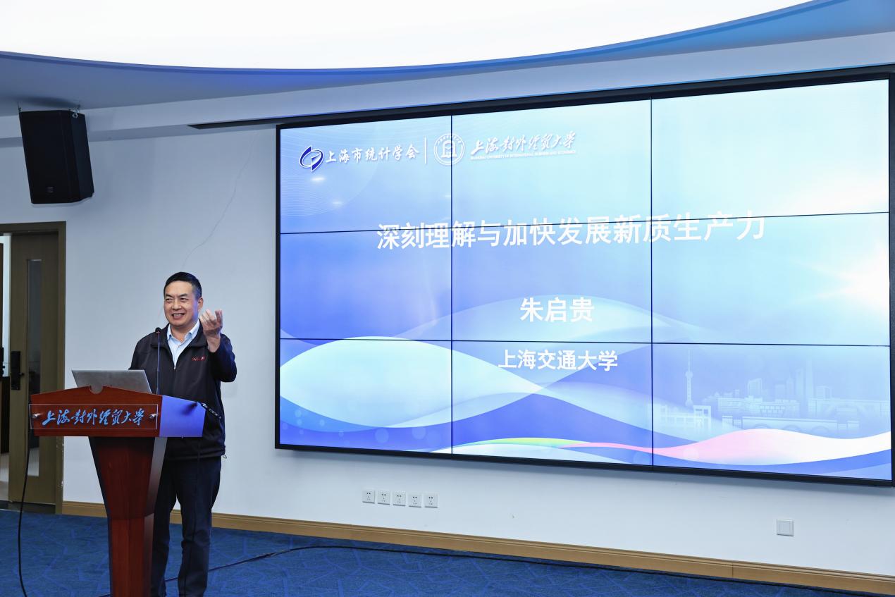 為深入貫徹黨的二十大精神,服務上海建設具有全球影響力的科技創新中心目標,由上海市統計學會與上海對外經貿大學統計與信息學院聯合舉辦的“上海新質生產力的統計方法”學術年會于4月17日在古北校區成功舉辦。此次研討會吸引了來自上海交通大學、上海社會科學院、江西財經大學、山東大學、澳大利亞麥考瑞大學、浦東新區統計局、虹口區統計局、奉賢區統計局、嘉定區統計局、楊浦區統計局、上海數據交易所等近十余家統計機構和高校專家、學者及師生50余人參加。上海對外經貿大學副校長徐永林、上海市統計學會會長肖永培、副會長朱啟貴、上海對外經貿大學發展規劃處副處長(主持工作)趙倩、統計與信息學院黨委書記黃靜、院長張日權以及統計與信息學院師生代表出席了開幕式。開幕式由黃靜主持。