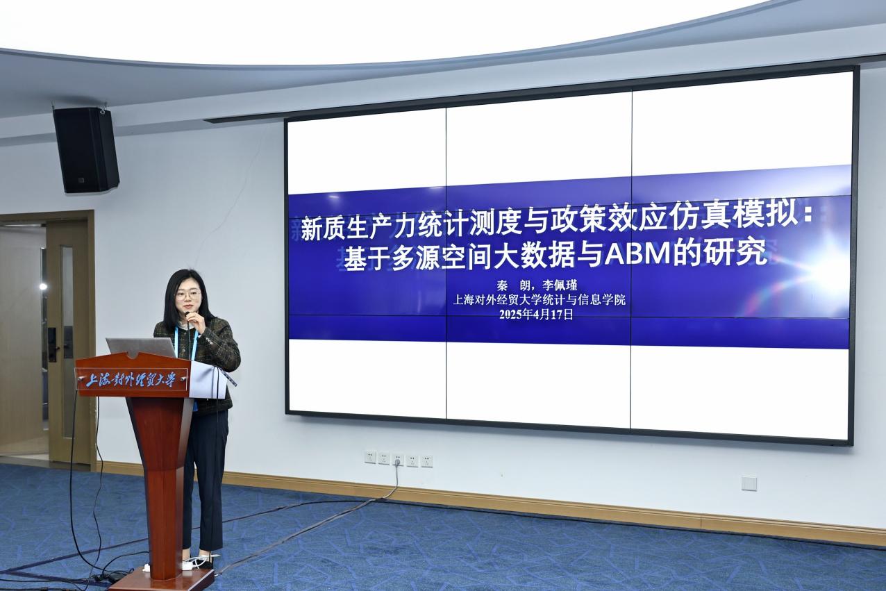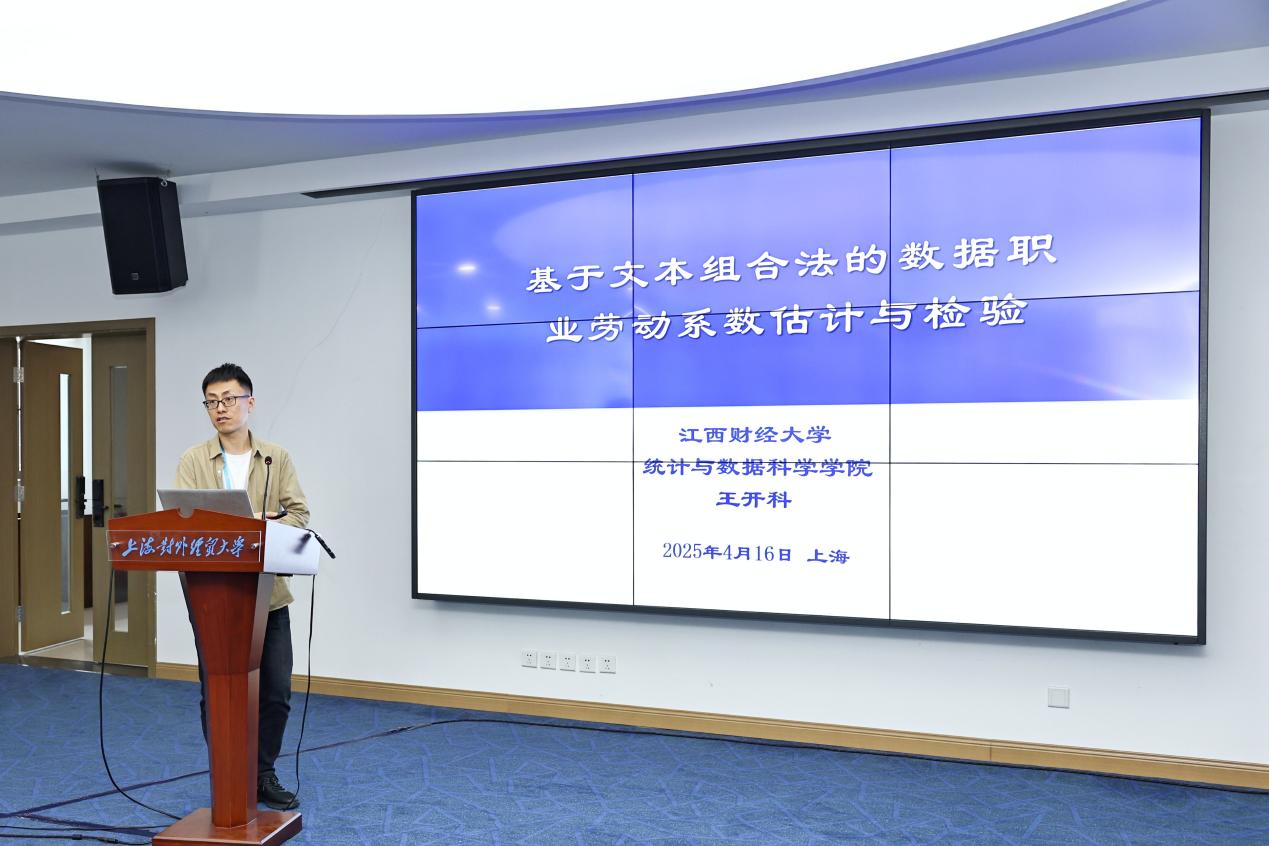 來自澳大利亞麥考瑞大學的金卓教授、山東大學的田沛佩研究員、上海對外經貿大學的吳開堯教授、司繼春副教授、李佩瑾副教授、劉弘之老師也分別圍繞“Textual Analysis of Insurance Claims with Large Language Models”“消費可持續評估與管理”“綠色技術創新對中國制造業全球價值鏈地位的影響” “教育公平、勞動力結構與企業高質量發展”“新質生產力統計測度與政策效應仿真模擬:基于多源空間大數據與ABM的研究”“量子計算中的統計學問題”等主題分享了他們的研究成果。