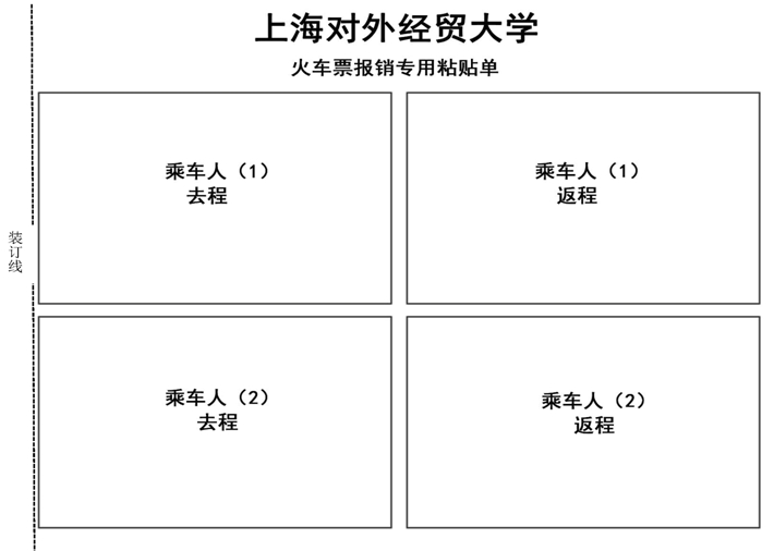 報銷紙質火車票的,須將火車票平鋪粘貼在《上海對外經貿大學火車票報銷專用粘貼單》(附件四)上。