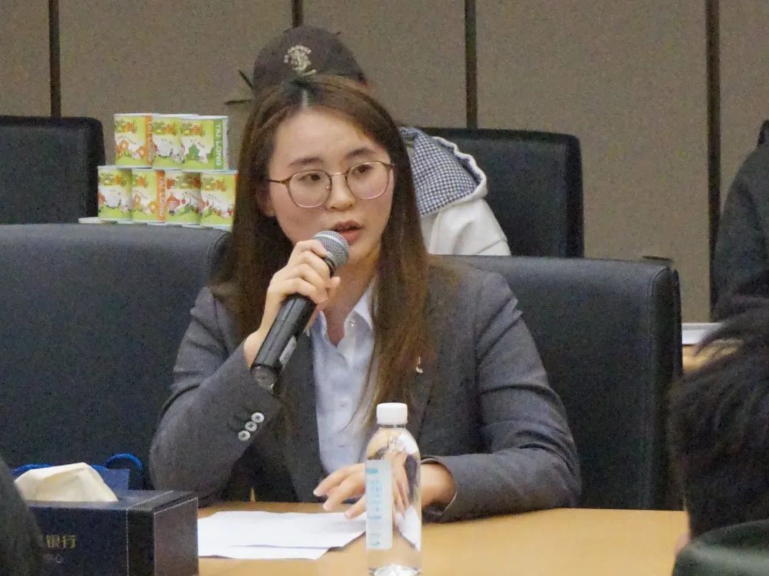 分享環節,徐申鷗同學分享了《數說貿易強國建設》微團課,她通過一系列的數字增長,詳細展示了十年來我國對外貿易取得的成績,表達了對貿易強國建設的信心和決心,并呼吁現場人員為貿易強國建設貢獻自己的力量與擔當。