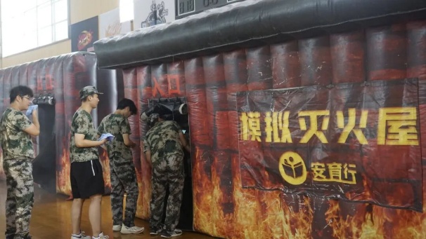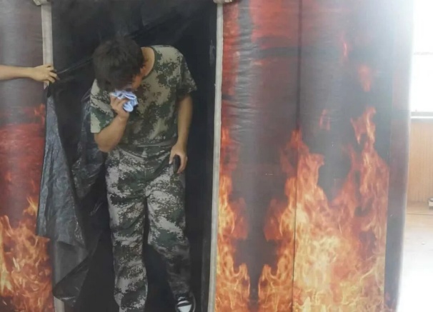 隨后在充滿無害煙霧的黑暗逃生屋內,同學們嚴格遵守“彎腰低姿、濕毛巾捂口鼻”的逃生原則,沿安全標識迅速有序撤離,切身感受火場環(huán)境的緊張與規(guī)范逃生的重要性。