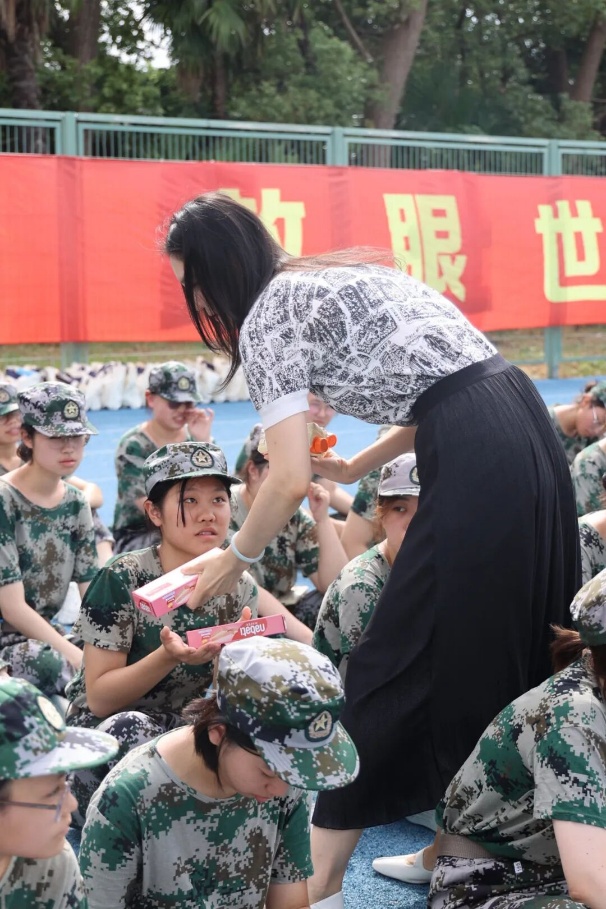 李瑞囡希望同學們珍惜這段寶貴經歷,將軍訓中錘煉出的堅韌品格、嚴明紀律和團結精神轉化為今后學習生活的不竭動力,以“青春之我”勇擔時代使命,續寫無愧于自己、無愧于時代的奮斗篇章。在活動現場,學院將精心準備的慰問禮包一一遞至新生同學們手中,這份關懷如秋日涼風,吹散了訓練的艱苦,溫暖了同學們的心扉,讓同學們深切感受到學院大家庭的溫暖與牽掛。