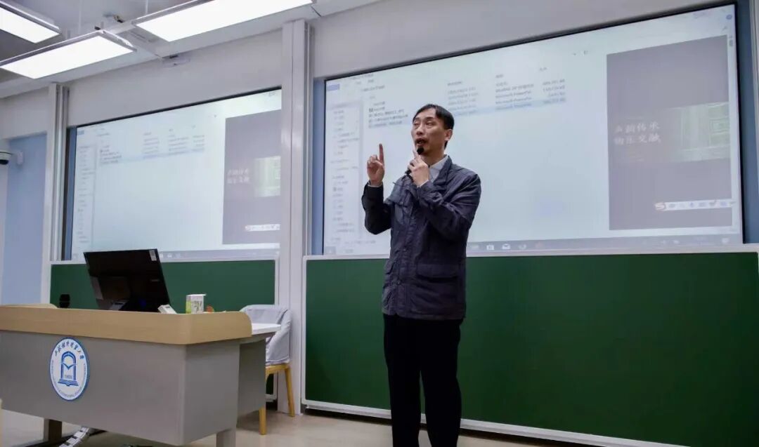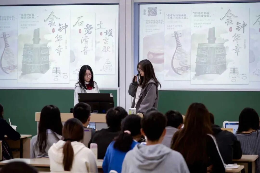 褚靈與曹伊雯同學的作品聚焦數字媒體設計,分享全程圍繞作品《聲韻傳承,物樂交融》展開。褚靈首先介紹了團隊分工,隨后講解了創作靈感來源,接著又介紹作品的關鍵技術,包括操作工具、設計理念與繪畫過程;細致入微的講解讓同學們學到了許多實用的美工技巧。她們最后強調,作品畫面不僅要突出IP形象,還需包含圍繞主題的文字、圖示等信息,不能只側重自身IP,還要兼顧傳播與教育意義。