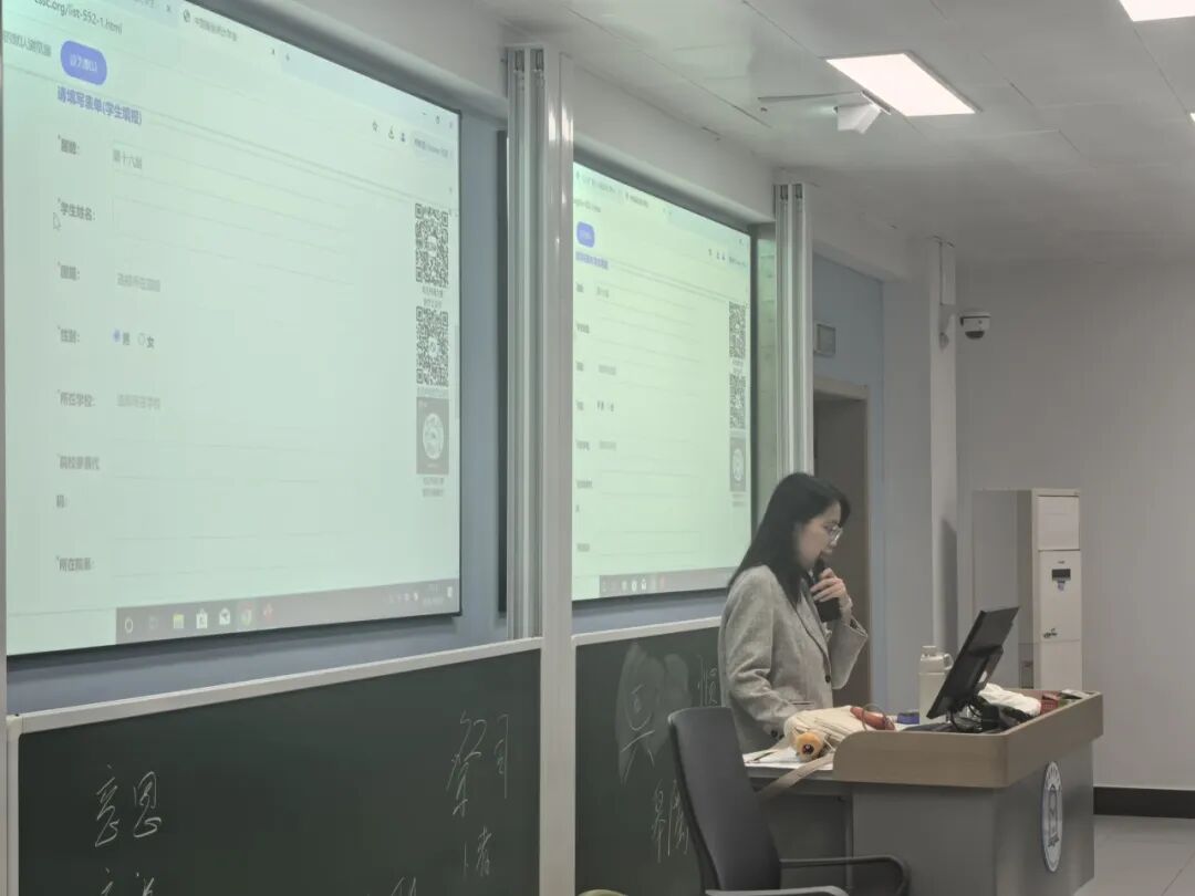 隨后,鄒老師詳盡介紹競賽流程,清晰列出報名、校賽、省賽、全國總決賽的時間地點,細致分享了報名具體流程,并舉例帶領同學們填寫問卷。