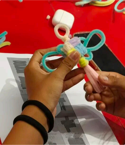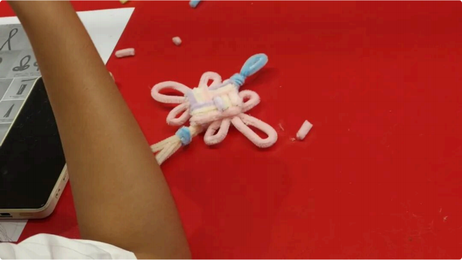 經過一個多小時的精心創作,一個個形態各異、色彩斑斕的扭扭棒中國結誕生了!每一個作品都獨一無二,承載著創作者的心意與巧思,比傳統的中國結更多了一份溫暖。