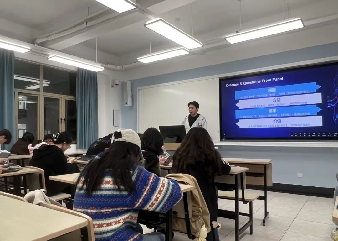 段延學長系統(tǒng)性地分享了如何通過算法驅(qū)動項目成果。他結(jié)合自身參與數(shù)學建模、企業(yè)競爭模擬等多項賽事的經(jīng)驗,為同學們梳理了四類常見技術(shù)賽事的評分標準與備賽路徑。學長重點解析了“題-模-數(shù)-驗-講”五步方法論,強調(diào)從明確問題到模型構(gòu)建、數(shù)據(jù)驗證和成果敘述的全流程嚴謹性。他還通過實際案例,生動展示了從文獻復現(xiàn)到創(chuàng)新應用的完整科研閉環(huán),并推薦了涵蓋數(shù)據(jù)處理、模型開發(fā)到工程部署的全套工具鏈。段學長的分享條理清晰、內(nèi)容扎實,讓同學們對如何系統(tǒng)性地開展一個算法項目有了全面深刻的認識。