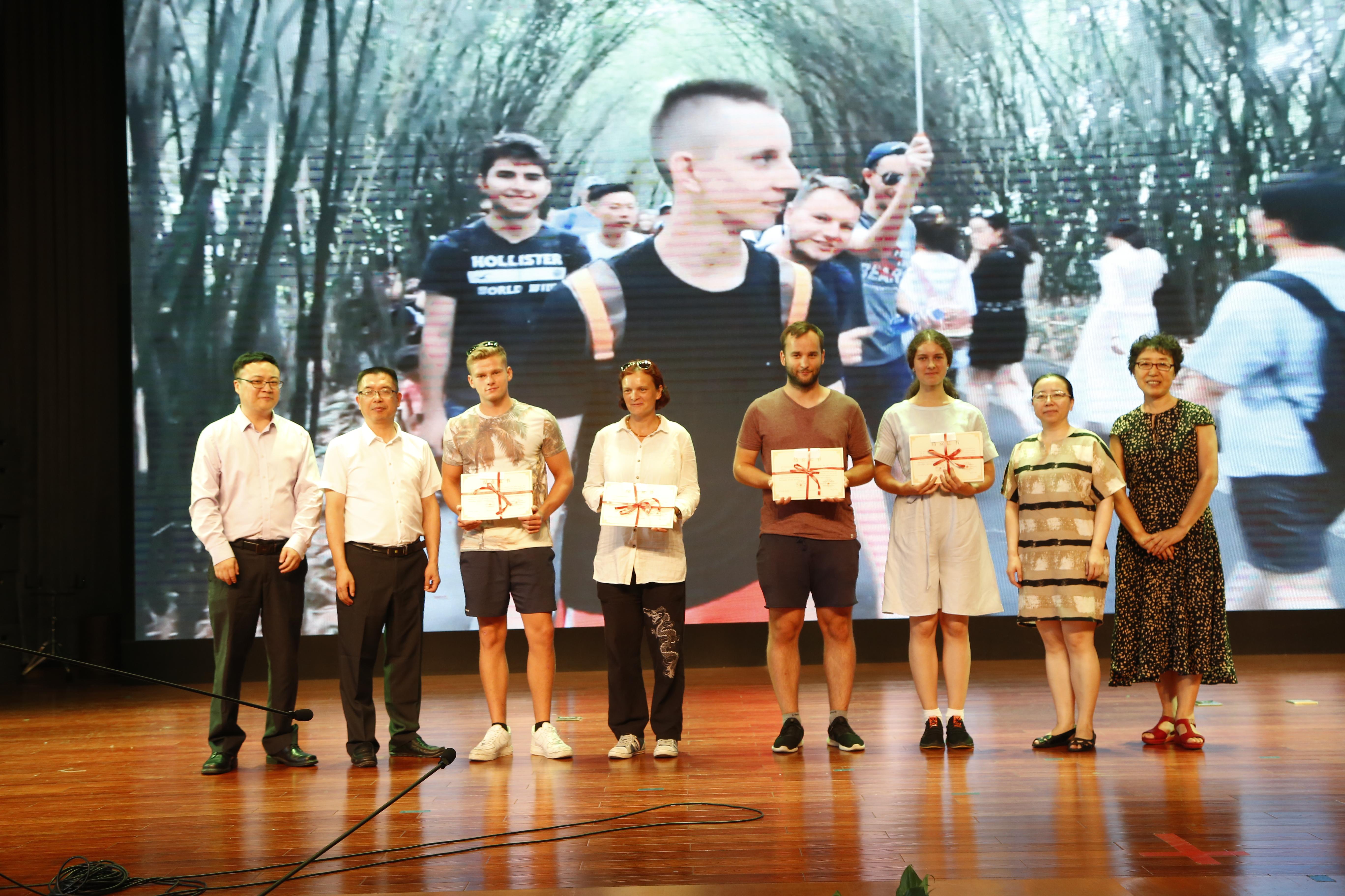 演出交流后,在場的師生們還一起見證了上經(jīng)貿(mào)大孔子學(xué)院夏令營的結(jié)營儀式,由宋彩萍、鄒囡囡、孟維亮和陳偉平共同為參與本次夏令營的外籍學(xué)生們頒發(fā)結(jié)業(yè)證書。