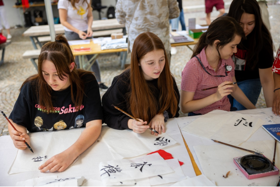 為了給當地師生們帶來更多走進美麗中國的“親身體驗”,盧大孔院通過VR技術讓每位活動參與者逐一與四川的大熊貓進行了親密互動,遠程欣賞了云南昆明的美麗風光。此外,精心準備的書法臨摹、品茗賞樂和中華美食等活動,也吸引了大量的師生駐足參與。活動現場還迎來了盧布爾雅那大學其他院系領導、漢學專家的到訪與祝賀。