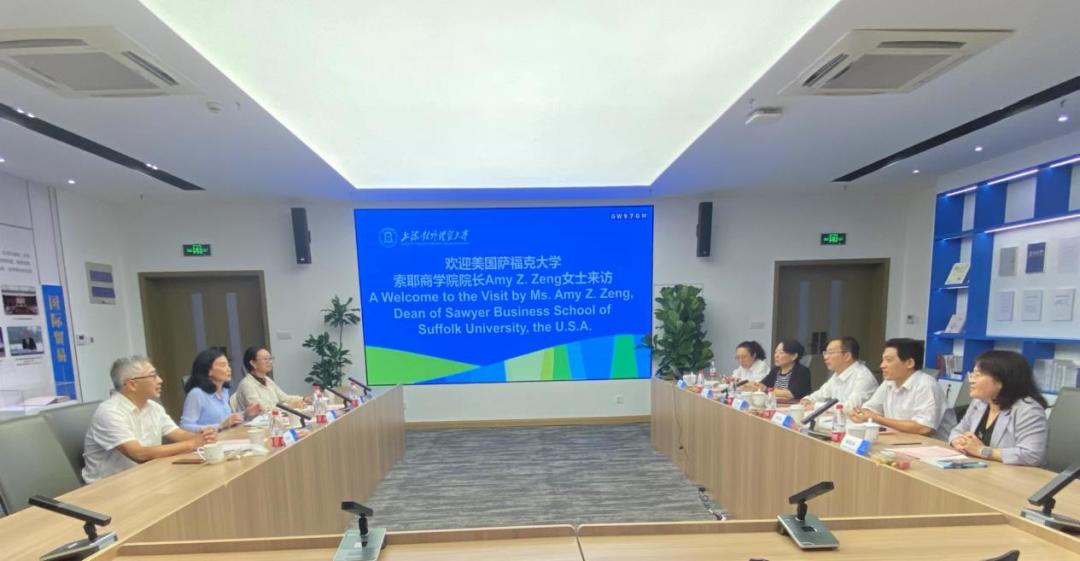 9月27日,美國薩??舜髮W索耶商學院(Sawyer Business School of Suffolk University, the U.S.A.)院長Amy Z. Zeng教授來訪我校。校黨委副書記吳毅會見索耶商學院院長Amy Z. Zeng教授,外事處、國際經貿學院、金融管理學院、后勤綜合管理處等部門領導或代表參加了會見。