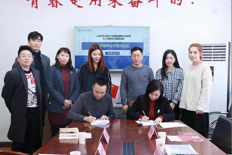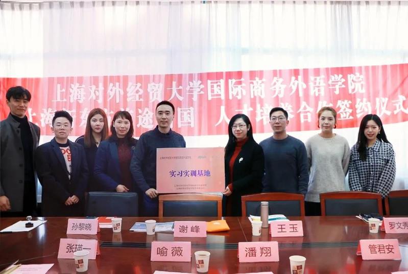 2021年1月19日下午,國際商務外語學院與上海前途出國人才培養合作簽約儀式在博雅樓204舉行。上海對外經貿大學國際商務外語學院黨委副書記謝峰、副院長王玉、就業主管孫黎曉、畢業班輔導員羅文秀與上海前途出國徐匯中心運營總監潘翔、人力副總監喻薇、市場代理經理張瑛一、后期組長管君安(校友)、市場部劉佳俊老師等人出席了本次會議。