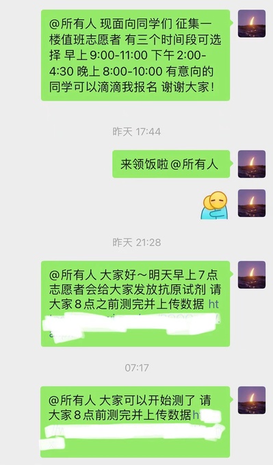 研究生第五黨支部黨員張北自疫情封控以來,擔任學生社區宿舍樓40號樓樓長,為同學們定時發放抗原試劑、收集抗原測試結果,同時配合老師及其他志愿者完成每日三餐發放等工作。在工作中,她深刻體會到了學校老師和志愿者工作的辛苦,也感謝同學們的認真配合。她說,作為黨員,有義務在疫情期間做一顆小小的螺絲釘,為同學服務。