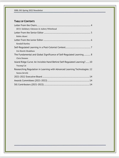 SSRL SIG 主辦的學術簡報(SSRL SIG Newsletter)每年出版三期,由簡報編輯部選定近幾年自主學習領域最具研究潛力的主題,在全世界范圍向最具代表性的研究者約稿。