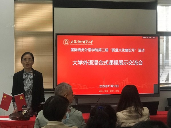 2022年11月15日下午,大學外語教學部舉辦了“學術英語線上線下混合式教學成果展示”活動。此次活動由學術英語第一教研室和學術英語第二教研室聯合舉辦。學術英語是我院大學外語教學部首批依托學校項目開展線上線下混合式教學試點的課程,課程團隊從這一年多的教學實踐中積累了較為豐富的教學經驗,取得了良好的教學效果,深受學生認可。此次教學成果的展示一方面是將老師們的優秀教學成果進行分享,另一方面也是以此為契機,促進老師們在教學方法、教學心得和教學經驗方面展開更為廣泛和深入的交流。