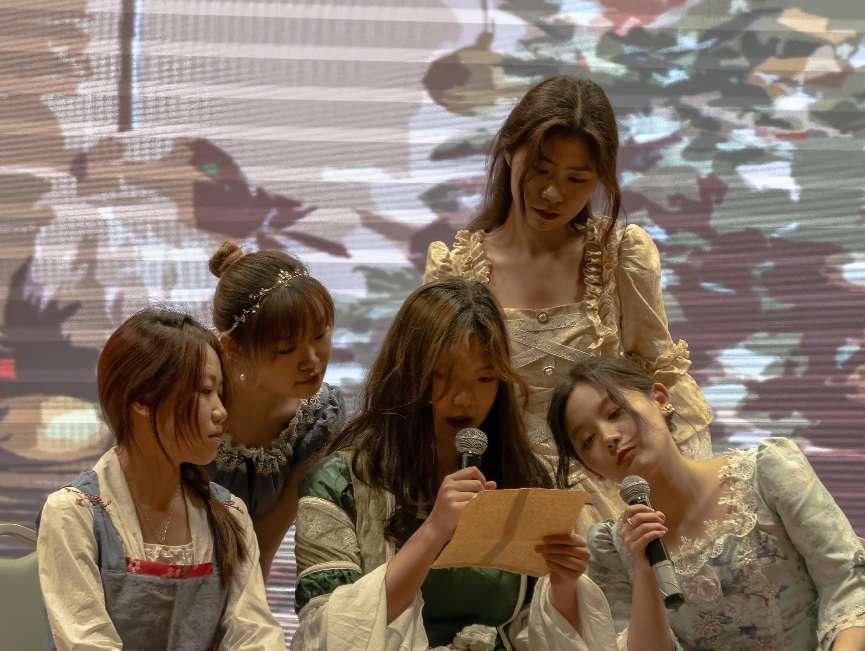 本屆大賽由國際商務外語學院團委主辦,前期準備歷時近兩個月,面向外語學院大一、大二年級所有班級展開招募,并對參賽隊伍進行了初賽選拔,有6支表現突出的隊伍成功進入決賽。決賽現場用英語、日語、法語等三語制作了特色織帶文創產品,各參賽劇目涵蓋音樂劇、懸疑劇、家庭劇、校園劇、卡通繪本等,題材豐富,內容廣泛。經過精彩激烈的角逐,最終日語2101班獲得一等獎;中英2201班、法語2202班獲得二等獎;商英2201班、中英2102班、商英2101班獲得三等獎。
