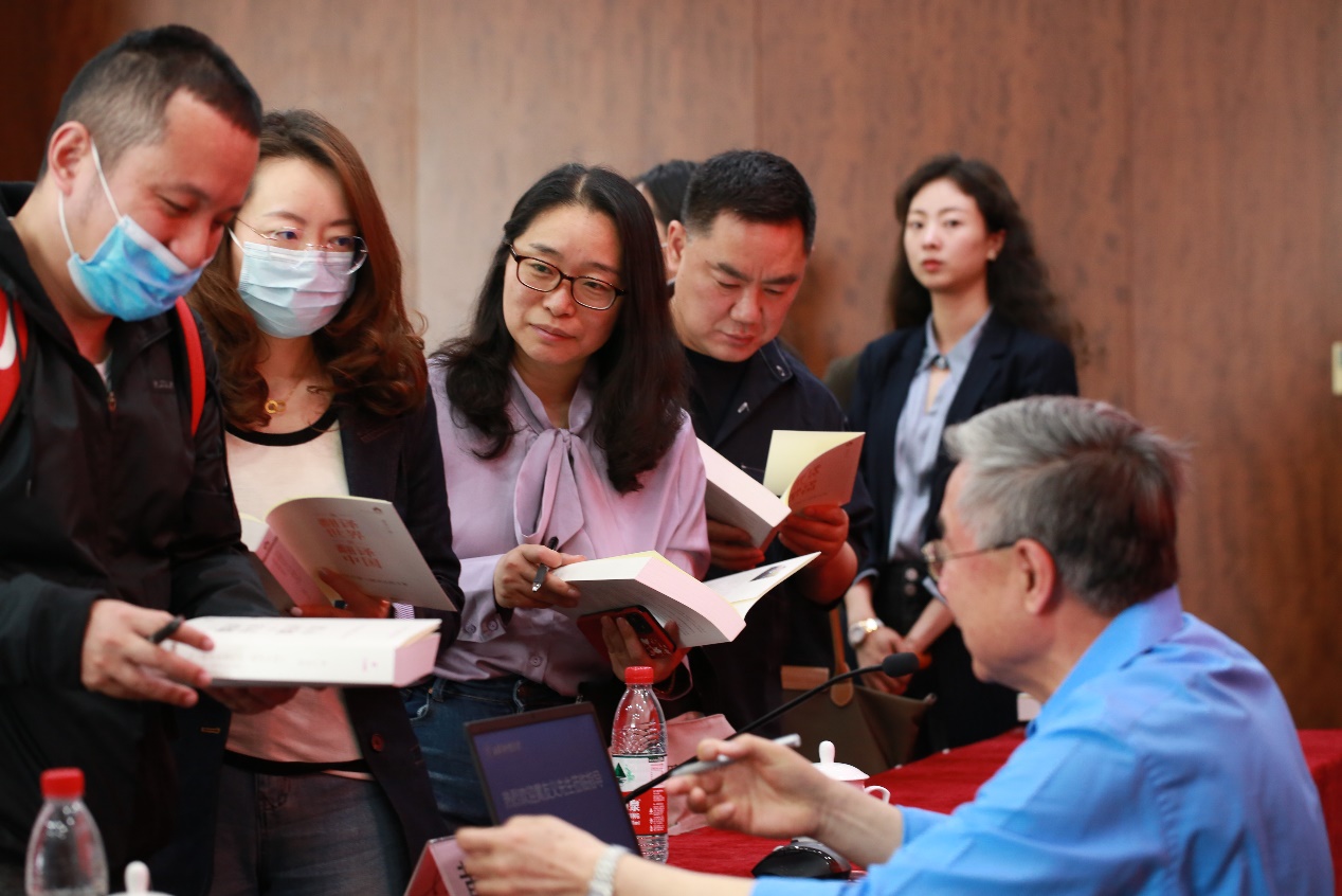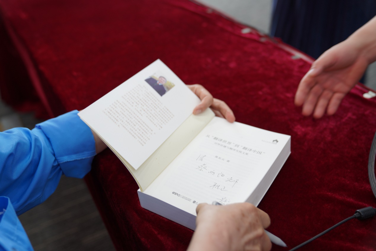 報告結束后,在場師生手捧黃友義會長的新作《從“翻譯世界”到“翻譯中國”》熱切等候專家簽名。黃會長一一詢問師生的姓名,并逐一簽名留念,現(xiàn)場的氣氛非常熱烈。