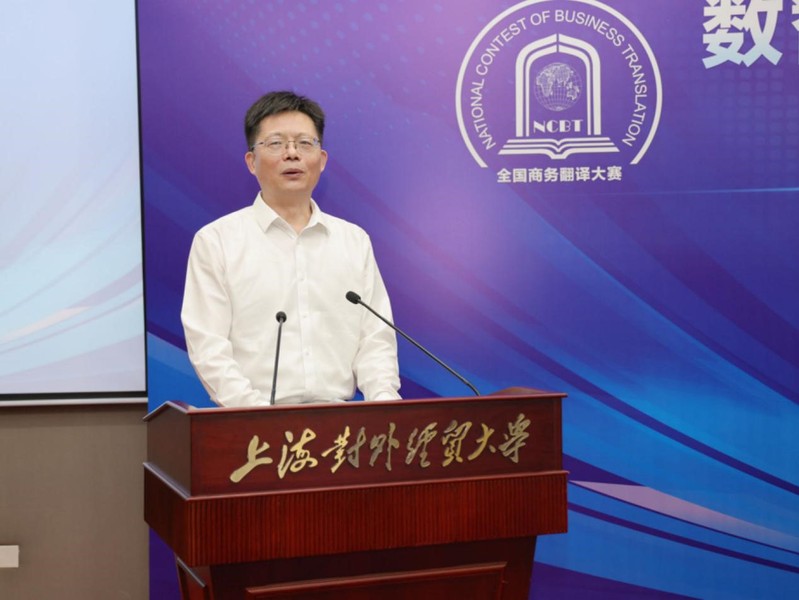 7月6日,數(shù)智時代翻譯與國際傳播人才培養(yǎng)高端論壇暨第三屆全國商務(wù)翻譯大賽頒獎典禮在上海對外經(jīng)貿(mào)大學(xué)松江校區(qū)信息樓526會議室成功舉辦。本次活動由全國翻譯專業(yè)學(xué)位研究生教育指導(dǎo)委員會、中外語言文化比較學(xué)會、上海市外文學(xué)會、上海市科技翻譯學(xué)會和上海對外經(jīng)貿(mào)大學(xué)共同主辦,上海翻譯專業(yè)學(xué)位研究生教育指導(dǎo)委員會、上海創(chuàng)凌翻譯服務(wù)有限公司、中語智匯科技(廈門)有限公司、上海交通大學(xué)出版社協(xié)辦,上海對外經(jīng)貿(mào)大學(xué)國際商務(wù)外語學(xué)院承辦,試譯寶提供技術(shù)支持。上海對外經(jīng)貿(mào)大學(xué)黨委書記殷耀,中國譯協(xié)常務(wù)副會長、全國翻譯專業(yè)學(xué)位研究生教育指導(dǎo)委員會專家委員會主任黃友義,上海市外文學(xué)會會長、上海外國語大學(xué)副校長查明建出席并致辭。資深翻譯家、澳大利亞文學(xué)研究專家、上海對外經(jīng)貿(mào)大學(xué)教授黃源深,上海翻譯專業(yè)學(xué)位研究生教育指導(dǎo)委員會主任委員、上海外國語大學(xué)教授柴明颎等20余名翻譯界專家學(xué)者、語言服務(wù)行業(yè)代表、國際商務(wù)外語學(xué)院領(lǐng)導(dǎo)班子成員、來自全國各地的獲獎學(xué)校師生代表及國際商務(wù)外語學(xué)院部分專業(yè)教師和研究生參加活動。開幕式由國際商務(wù)外語學(xué)院院長溫建平主持。