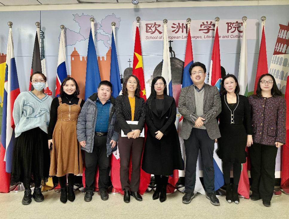 12月8日,調研團隊赴北京第二外國語學院調研,該校歐洲學院副院長方友忠、英語學院副院長周建萍、法語教研室主任周瑩、法語教師寶琤參加座談和交流。方友忠副院長向調研團隊詳細介紹了歐洲學院、夏斗湖學院及法語系發展情況,周建萍副院長介紹了國際傳播與全球治理實驗班發展情況。調研團隊教師紛紛表示該校廣泛的跨國校際合作、境外全建制校區建設及“法語國家與地區講壇”等精品學術交流平臺建設經驗令人印象深刻,值得學習借鑒。雙方還就法語系建設、外語類專業國際組織人才培養機制、教師隊伍建設等問題進行了深入交流,并探討了進一步合作方向。