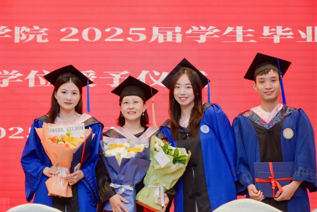 教師代表吳朋向畢業生們表達了衷心祝賀。她勉勵同學們要永葆求知之心,保持對世界的好奇和對知識的敬畏,在挑戰中不斷突破自我;要堅守責任與擔當,以人文精神溫暖他人,以家國情懷回饋時代;要勇敢面對挫折,以樂觀姿態堅守初心,在人生道路上篤定前行。