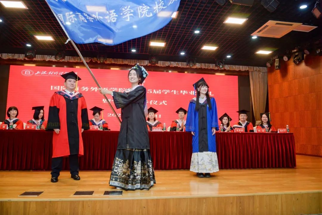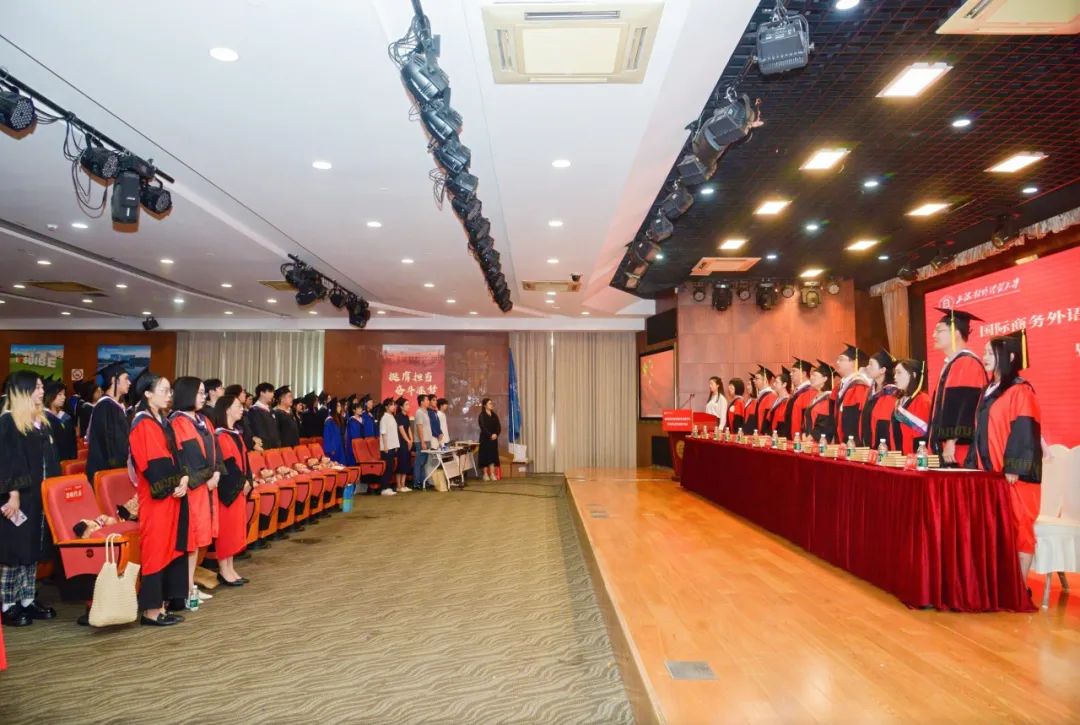 在雄壯的國歌聲中,國際商務外語學院2025屆學生畢業典禮暨學位授予儀式拉開序幕。