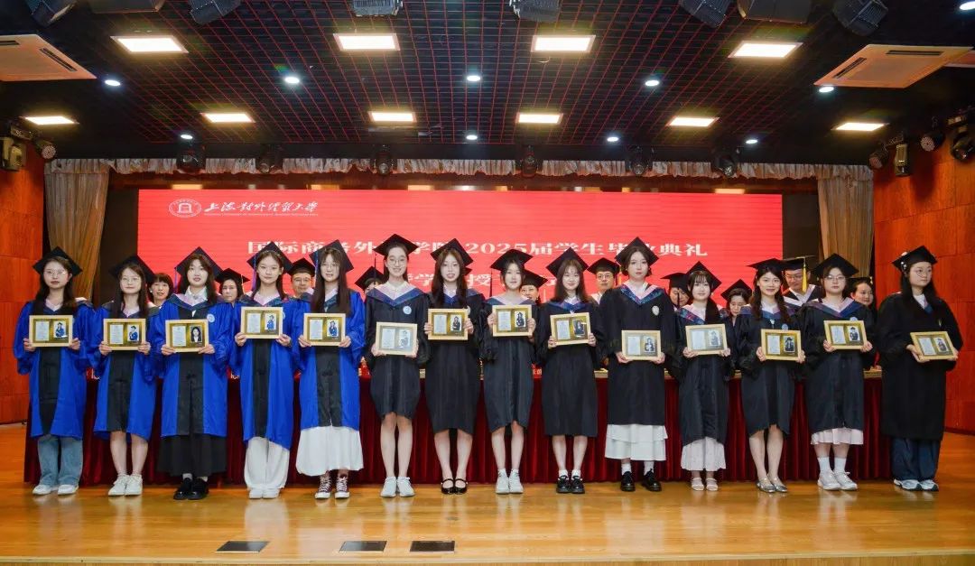 劉根春宣讀《2025年上海市優秀畢業生、上海對外經貿大學優秀畢業生名單》,并寄語他們把“優秀”刻進人生每一個腳印,成為自己和時代共同期待的模樣!