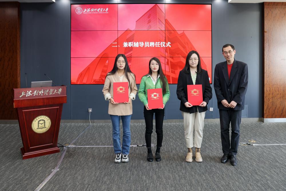 為進一步深化學校“三全育人”內涵建設,加強專兼結合的輔導員隊伍建設,黨委學(研)工部面向全校青年教師選聘國際商務外語學院董蓓、工商管理學院王海絨、馬克思主義學院朱丹為兼職輔導員。會上,王胤卿為3位兼職輔導員頒發聘書。