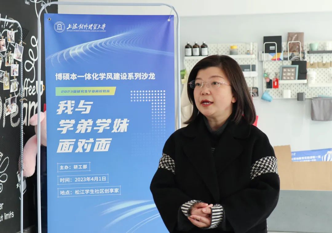 喬檀老師在致辭中講到,學校為學生們積極搭建朋輩教育的學習平臺,圍繞“博碩本學風建設一體化”組織開展了一系列沙龍活動。在2023屆研究生畢業之際,舉辦“我與學弟學妹面對面”活動,為畢業生和在校生搭建起情感的紐帶和經驗共享的平臺,希望優秀畢業生能夠做好榜樣示范和朋輩引領,希望在校學生能夠虛心學習,共同傳承上經貿大學子的優良學風。
