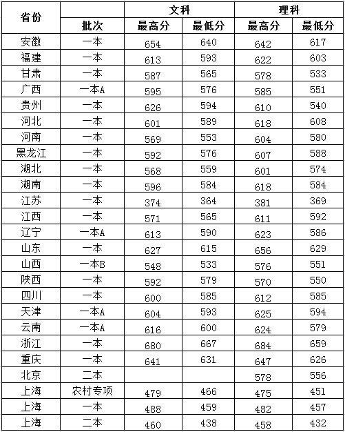 2015年各生源地錄取分數(shù)線