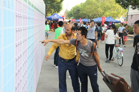 報到當天,校黨委書記殷耀,校長孫海鳴,校黨委副書記、副校長祁明,副校長徐永林等領導來到學生社區了解報到情況。他們與新生和家長親切交談,來到宿舍內了解新生入住情況。報到現場,后勤綜合管理處、醫療站、財務處、保衛處、招生辦公室等職能部門和各學院早早準備就緒,為新生辦理入學注冊、學費繳納、行李托運、戶籍遷移等各類事項。學校為經濟困難新生開通了綠色通道,方便學生辦理助學貸款和入學手續,同時為經濟困難的學生提供了專項助學金。100多名經過嚴格培訓的志愿者分別在9號線地鐵站、公交站臺、宿舍等地接待和引導新生。從上午七點到下午四點,從路線指引到信息咨詢、行李托管,雖然一天的志愿工作是有些勞累,可志愿者們仍然堅守崗位,始終以飽滿的熱情和溫暖的微笑迎接新生的到來。
