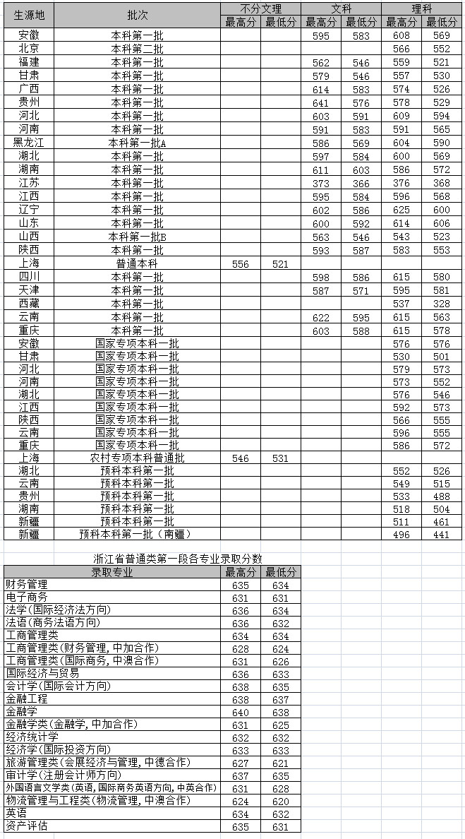 2017年各生源地錄取分數線