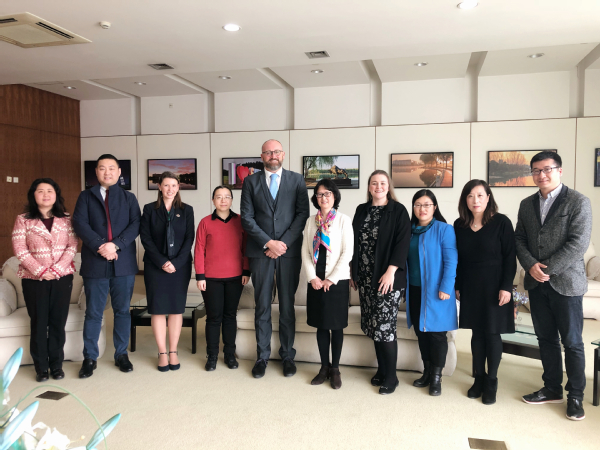 3月29日,由英國中央蘭開夏大學國際運營副校長Tim Steele帶隊的代表團來我校進行訪問,我校副校長陳潔、國際交流處處長鄒囡囡、國際商務外語學院副院長王艷艷等接待了英方代表團并舉行了會談。