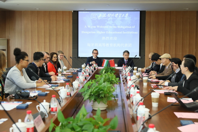 10月29日上午,匈牙利高等教育機構代表團來我校松江校區訪問。代表團一行包括來自匈牙利坦普斯公共基金會負責人及布達佩斯考文紐斯大學、羅蘭大學、布達佩斯技術與經濟大學、德布勒森大學、米什科爾茨大學等12所匈牙利高等教育機構的代表。我校黨委副書記、副校長祁明,外事處處長鄒囡囡,會展與旅游學院院長全華,法學院副院長郭學堂,統計與信息學院副院長劉慧,中東歐研究中心主任、“一帶一路”國際經貿關系與合作高等研究院副院長尚宇紅,國際經貿學院副教授金泉,工商管理學院及會計學院代表等參加了會談。