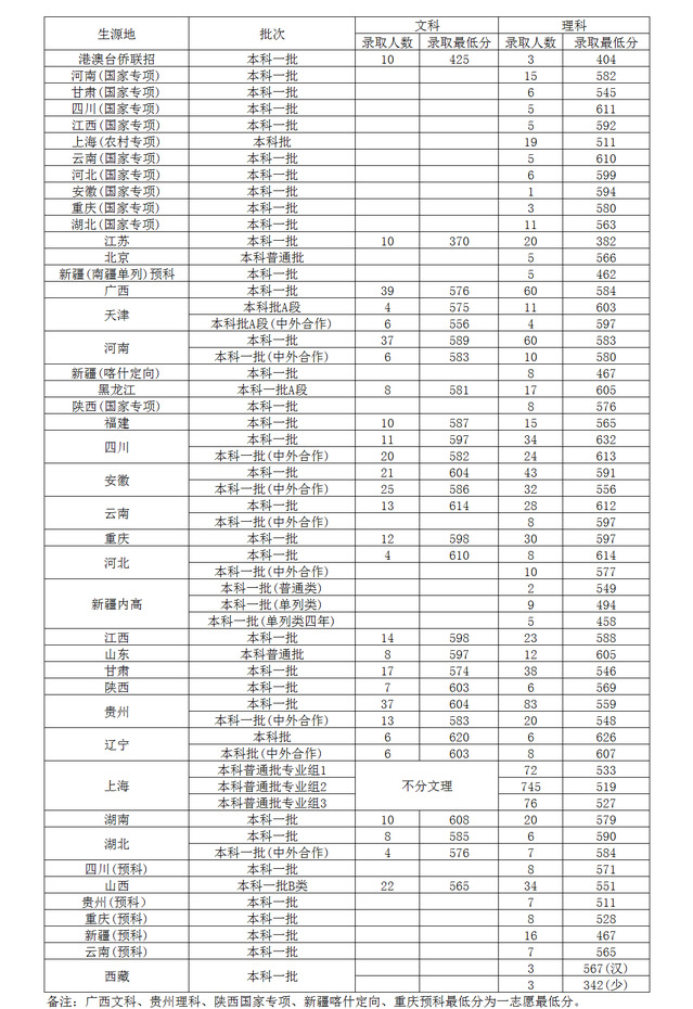 2019年秋季招生各生源地最低錄取線
