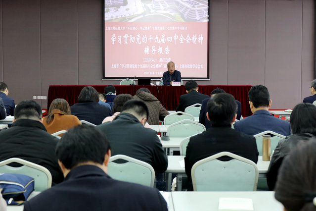 黨的十九屆四中全會召開后,學校迅速掀起學習貫徹落實四中全會精神的熱潮。學校廣大干部、教師認真學習會議精神。校領導組織集中學習,班子成員交流學習體會,各學院黨委、基層支部通過多種方式組織專題學習,廣大教師黨員對會議精神展開熱烈討論。11月28日下午,學校邀請上海市“學習貫徹黨的十九屆四中全會精神”宣講團成員桑玉成教授作十九屆四中全會輔導報告。學校黨委下發關于學習宣傳貫徹黨的十九屆四中全會精神的通知,組建校內宣講團,開展集體備課和宣講。相關專家教授在主要媒體上撰寫發表十九屆四中全會相關評論體會文章。學校深入貫徹黨的十九屆四中全會精神,堅決貫徹落實黨委領導下的校長負責制,扎實推進依法治校示范校建設,不斷完善內部治理體制機制,著力提高學校黨委管黨治黨能力和辦學治校水平。
