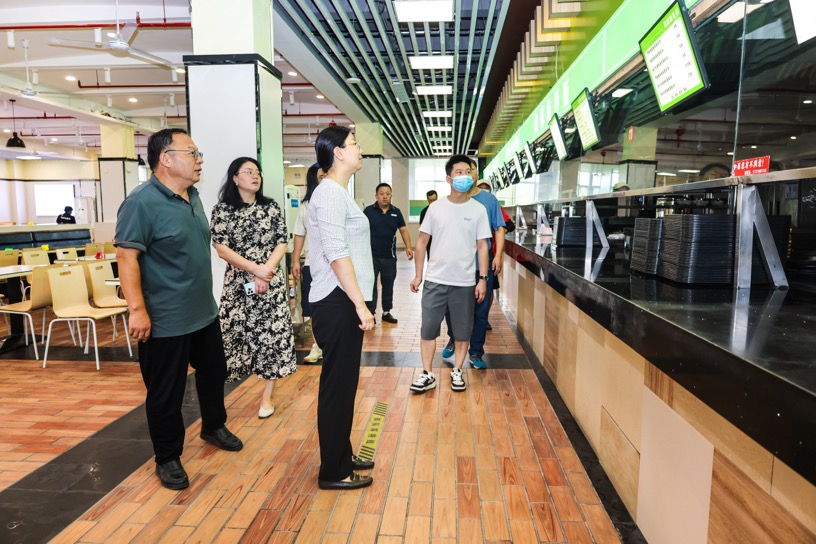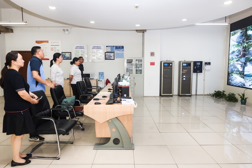 沈藝一行分別前往松江、閔行校區,深入學生食堂、圖文信息樓、六期學生公寓、學生社區等關鍵場所,詳細了解各部門安全管理落實情況,重點對校園基礎設施、食品安全、視頻監控系統運行狀態、校園消防設施、道路交通安全保障、宿舍安全管理等方面進行了細致排查。