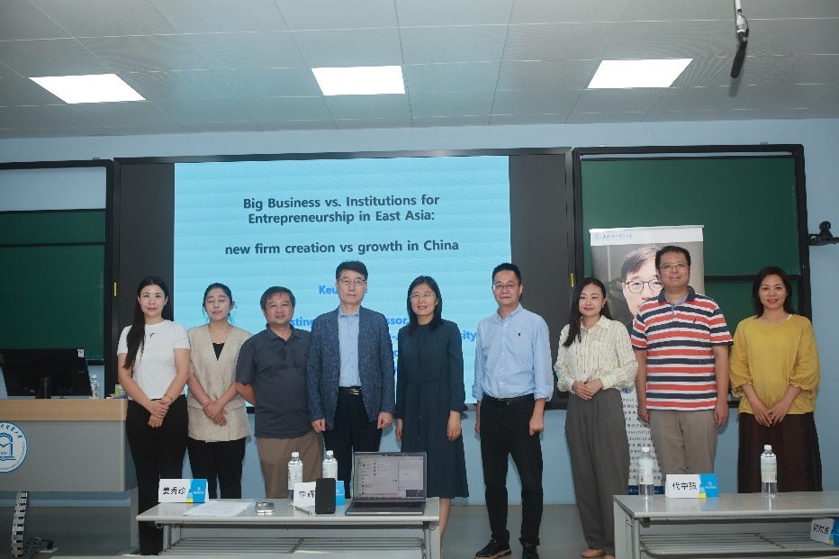 10月17日,經濟學領域杰出學者李根教授訪問我校,做客思源論壇,以“Big Business versus Institution for Entrepreneurship in East Asia: New Firm Creation and Growth in China”作主題講座。上海對外經貿大學副校長姜秀珍教授、國際經貿學院副院長代中強教授、國際經貿學院區域與產業發展研究中心主任李輝文教授出席活動并致辭。清華大學、安徽財經大學、貴州社會科學院等學者到訪出席。論壇由國際經貿學院教師毛竹青主持。
