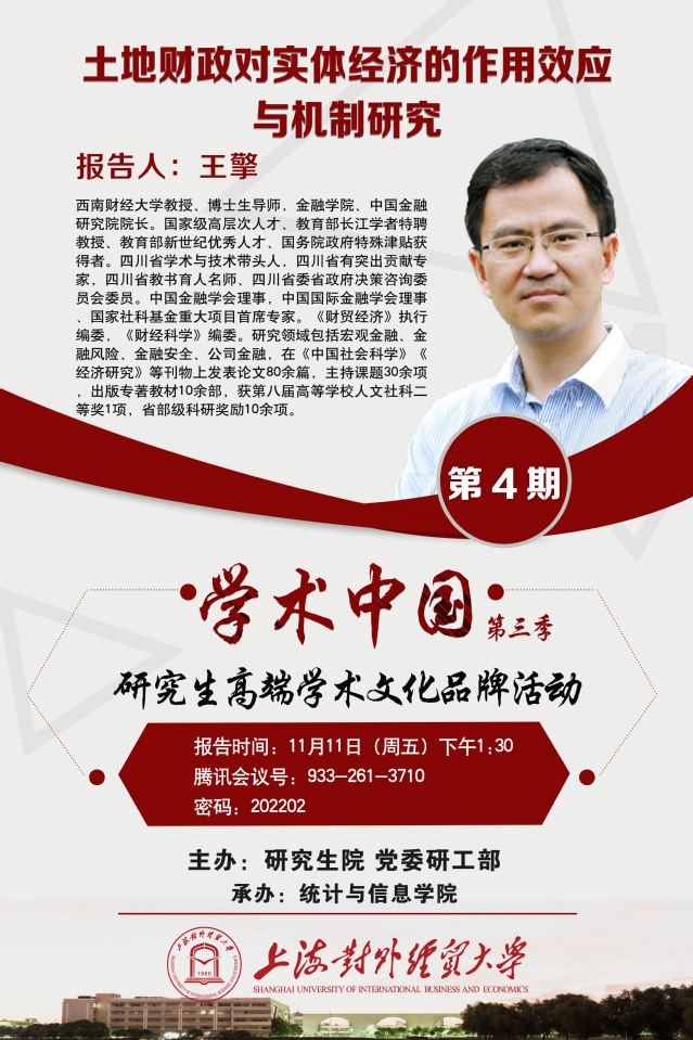 學術中國(第三季)第4期講座—土地財政對實體經濟的作用效應與機制研究