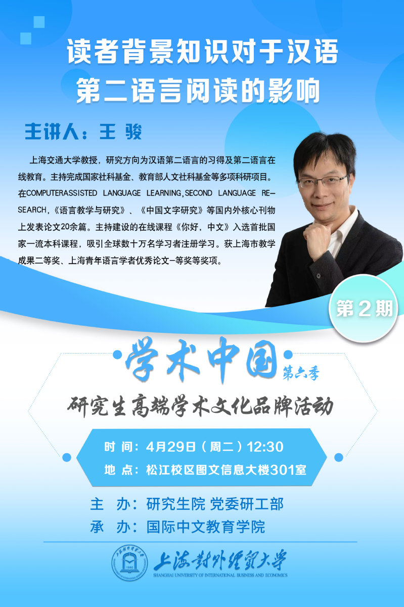 學術中國(第六季)第2期講座—讀者背景知識對于漢語第二語言閱讀的影響